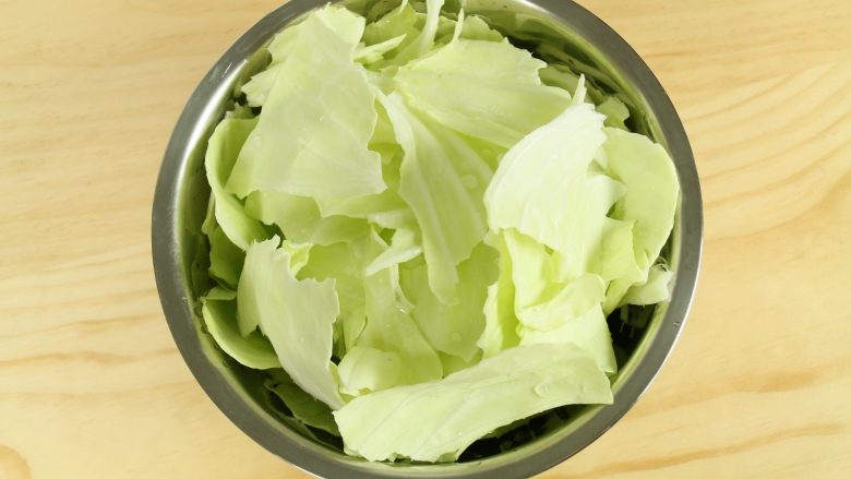 3. 包菜洗干净后,用手撕成小块。