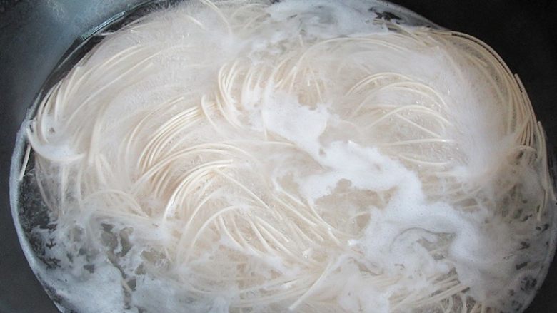6. 锅中烧开水,将面条煮熟