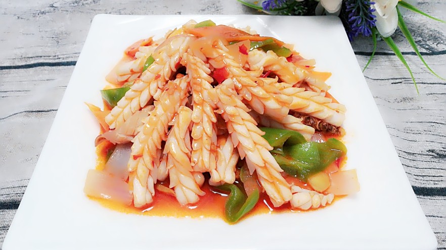 - 鱿鱼焯水时间不宜过长,定型后立刻捞出,煮久了鱿鱼变硬不好吃。配菜先下锅焯一遍水能缩短炒的时间,让鱿鱼口感更好。