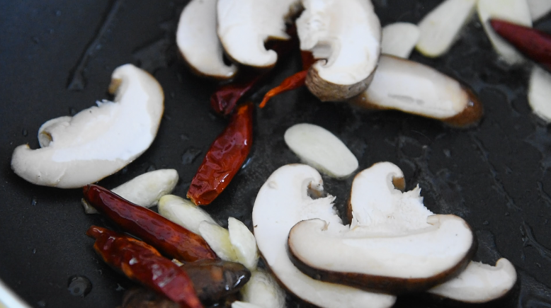 6. 芹菜切段、香菇切片、小米椒切片备用