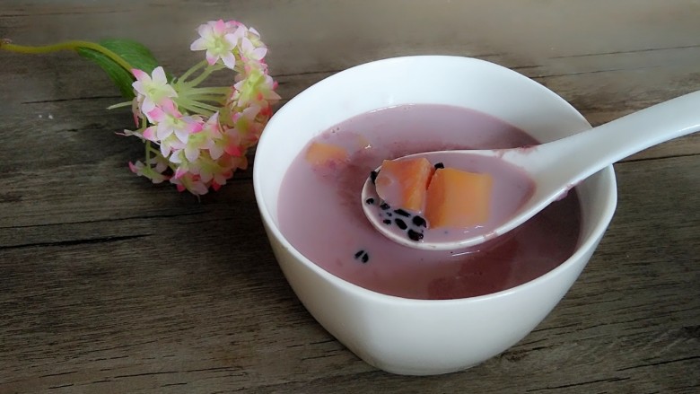6. 多余的黑米乳酪怎么办? 做一道甜点吧,准备牛奶,番薯。香芋一类的也行。看个人口味。