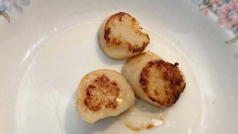 4. 鲜贝煎成两面金黄,微微有点糊的感觉盛盘,