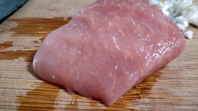 7. 取一块里脊肉,减肥所以用的里脊,其实取超市买现成的肥瘦相见的肉馅就可以,有些肥肉陷会更香。