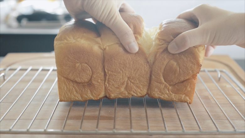 17. 松弛10分钟后用手按扁,宽度与模具一致。