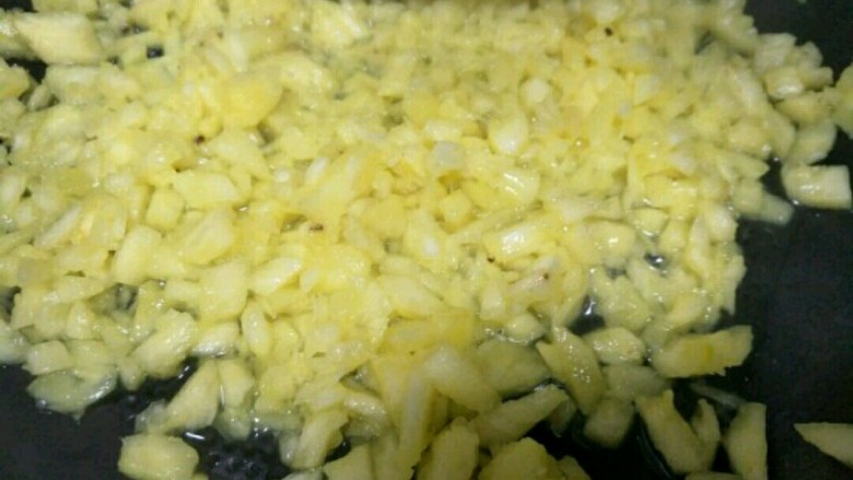 9. 将菠萝切成小颗粒,我没使用料理机打碎,切出来的口感会更好些~