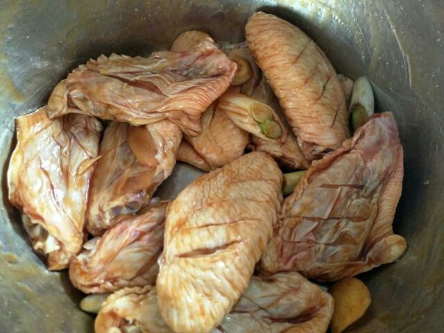 2. 鸡翅清洗干净,控干水份,两面划刀~