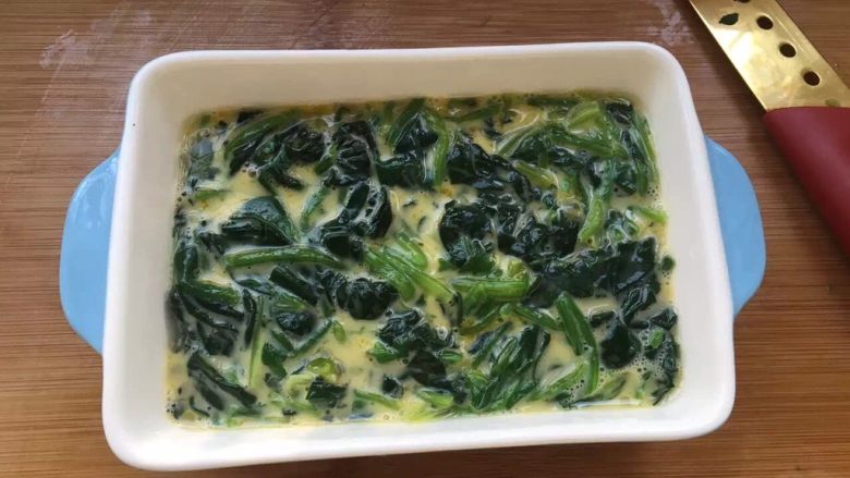 4. 倒入鸡蛋菠菜混合液