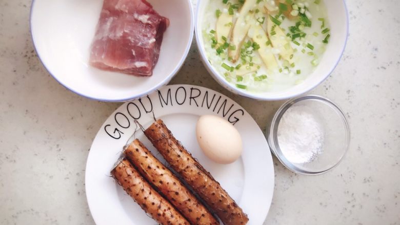 6. 将山药,猪肉,蛋黄一起放入辅食机中