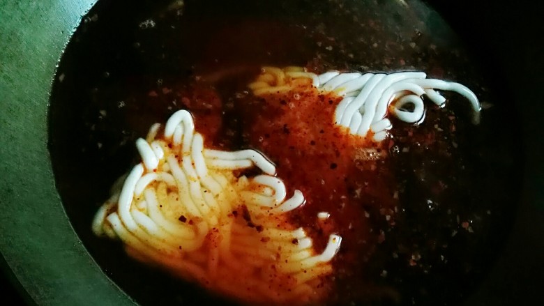 16. 土豆粉的边缘稍微透明就可以了,出锅前淋上适量醋,喜欢酸可以多放一点,但是一定不能太早,不然醋味就会挥发掉