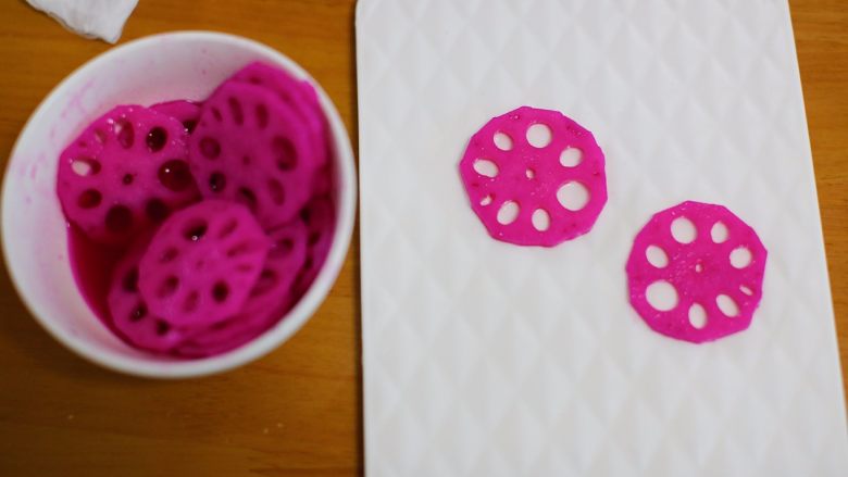 孩子看到就秒光的高颜值蔬菜做法 #小小美食日记#藕是对付秋燥的好帮手,孩子不爱吃,换个花样让他吃的欢。这个造型让花花看到马上就说妈妈这个真好看!我要吃我要吃! 换一个造型把藕,让藕美的冒泡,不要说吃了看到心情就大好 材料:藕200g 红心火龙果50g 白醋一勺 蜂蜜一勺