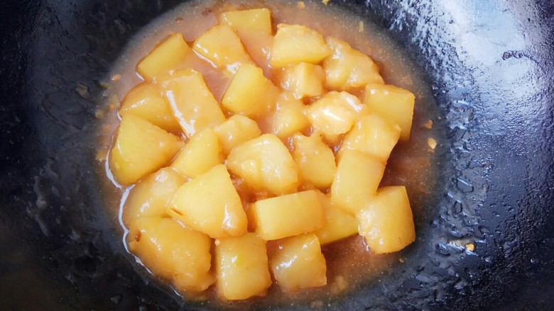 14. 水淀粉搅拌均匀倒入锅中勾芡