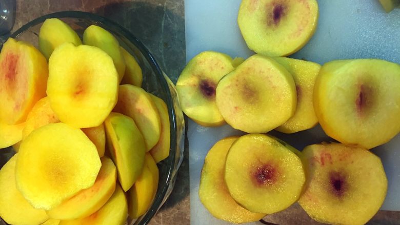 6. 切好后的样子,桃核丢掉(如果不介意形状,也可以不分开,这个按照个人喜欢的大小切)