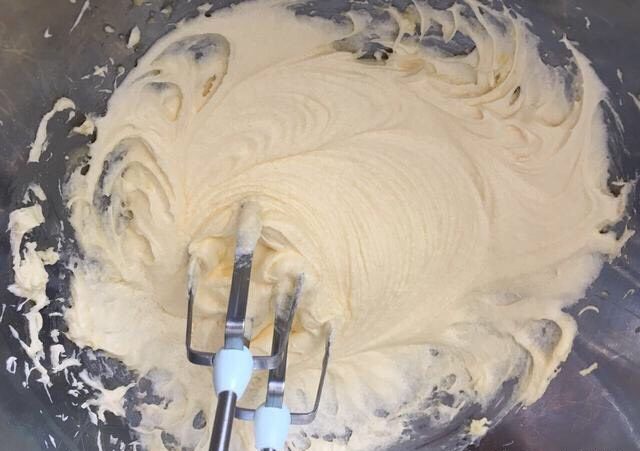 4. 软化的黄油加入糖粉,打至出现羽毛状。如果无法判断,就打2-3分钟就好。