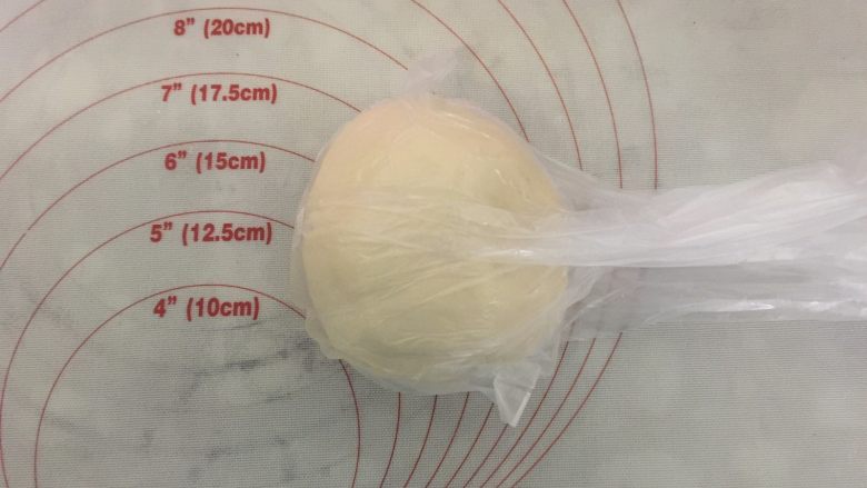 11. 慢慢收紧口,包好后盖上保鲜膜松弛一会