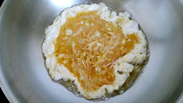 11. 倒入搅拌好的芥菜丝鸡蛋。