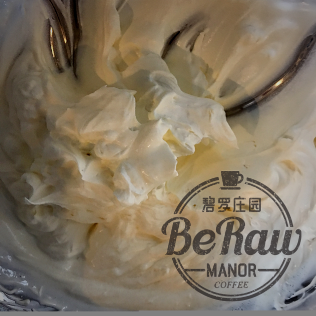 8. 注意奶油不要打发过头,打发的时候可依据个人口味放入少量白砂糖;