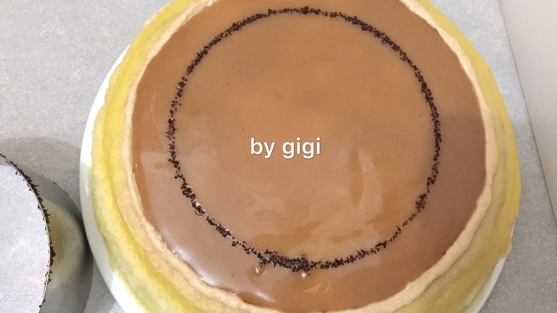 17. 重復鋪完所有千層皮 最後表面離邊緣處約1cm的地方 擠一圈奶油(這個作用是固定下步的伯爵鏡面用)放冰箱冷藏2小時