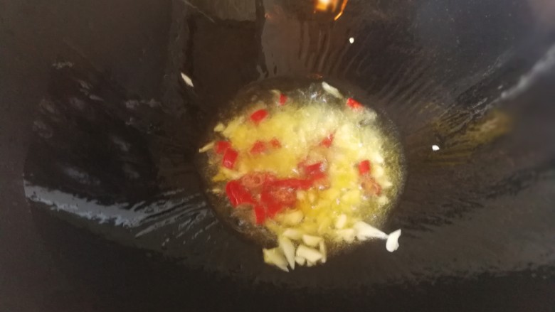 5. 蒜米切碎,这个菜要多放些蒜用来取出草菇里的部分土腥气,小米椒切碎。