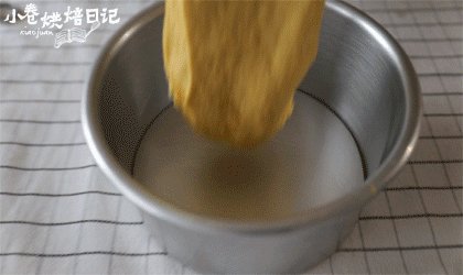 8. 模具表面擦薄薄的油,把发酵好的面糊用刮刀压拌,排出空气