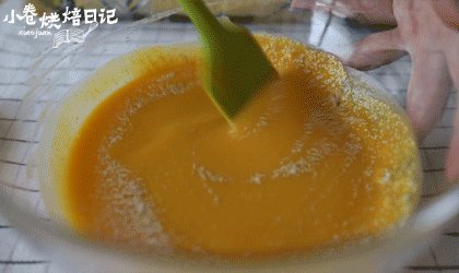 6. 加入面粉,搅拌成南瓜糊。