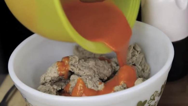 8. 在素蛋中,加入2汤匙准备好的布法罗酱。