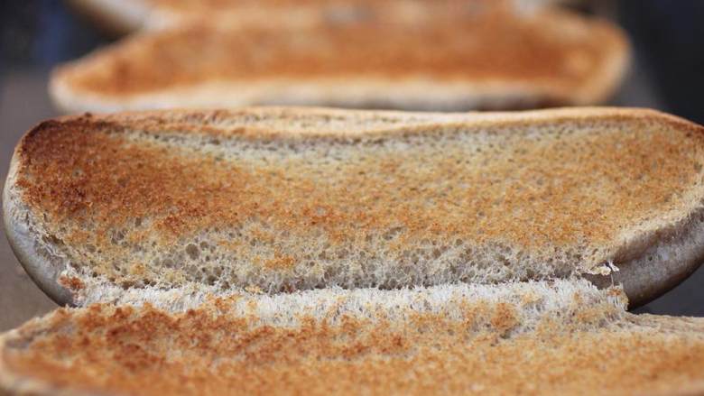 6. 将全麦热狗面包 热一下。