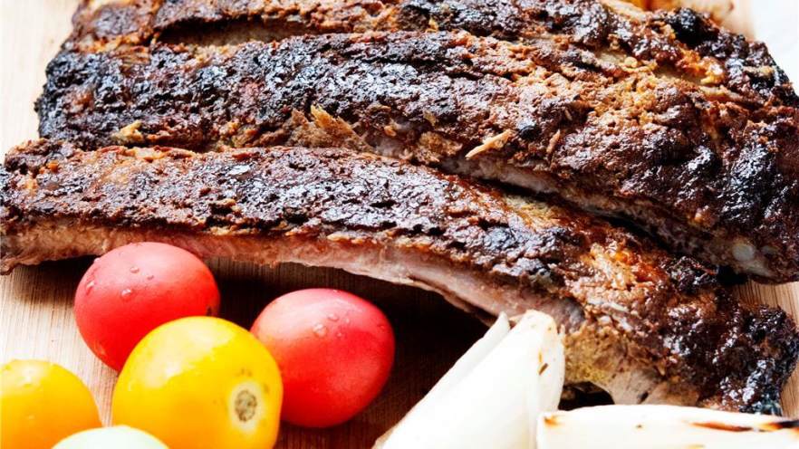 7. 倒上之前做好的腌料,均匀抹在肋排上。