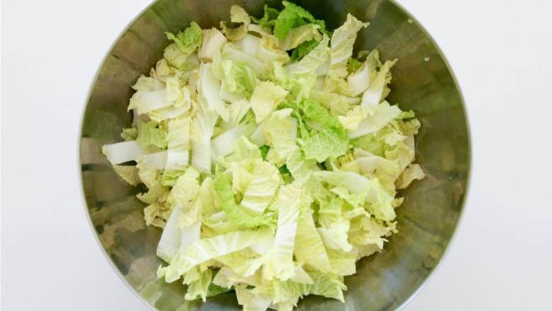 2. 洗净沥干大白菜 ,切成2.5厘米薄片