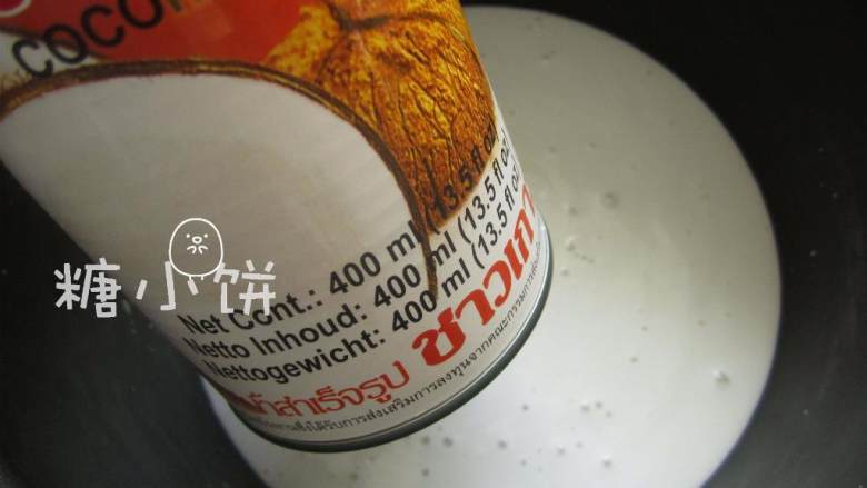 1. 椰浆 是比较粘稠的那种烘焙烹饪用的,不是市售的那种饮料椰子汁。(罐头上下各开一个孔就能容易地倒出来了)