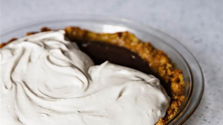 21. 用勺子将蛋白甜饼舀在馅饼上。