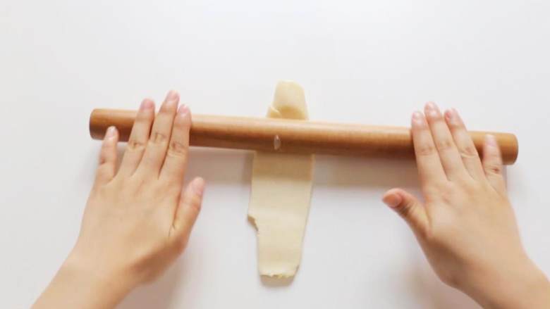 7. 面团竖放,收口朝上再次擀开成椭圆形。再次卷起,盖保鲜膜压湿布静置20分钟。