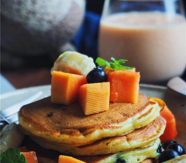 爆浆蓝莓酸奶松饼