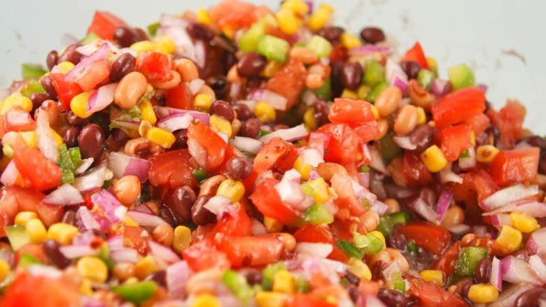 1. 沥干罐装豇豆(15 盎司),黑豆(15 盎司)和玉米粒。