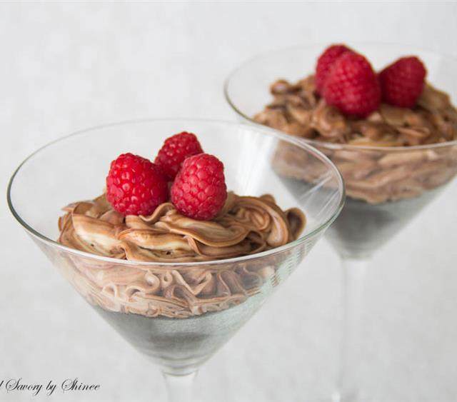 3. 将混合物倒进裱花袋里,挤进装有饼干碎的杯子里,放进冰箱冷藏30分钟,之后就可以享用啦!