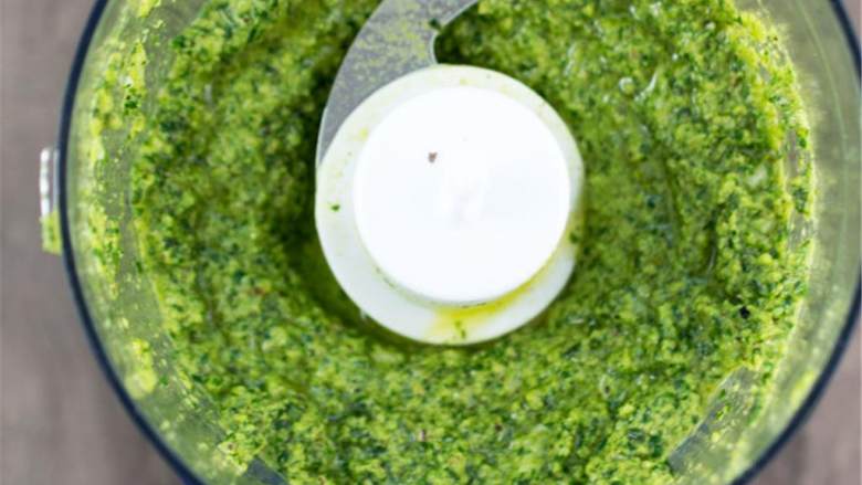 3. 接着加入新鲜罗勒(2 1/2 杯) 再搅拌30秒。