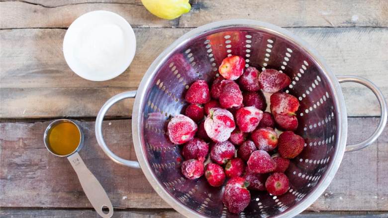 1. 需要提前把新鲜草莓放进冰箱冷冻,直到草莓冻硬。