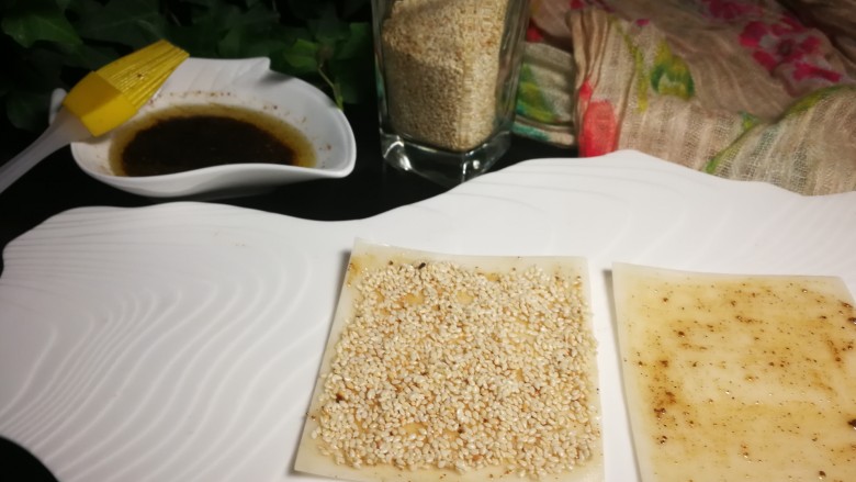 7. 撒上芝麻,这个根据自己喜欢放,可以比这个少一点更脆。