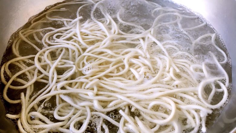 13. 水开后放入鲜面条,大火煮3~5分钟,改中火,煮至自己满意的口感为宜。