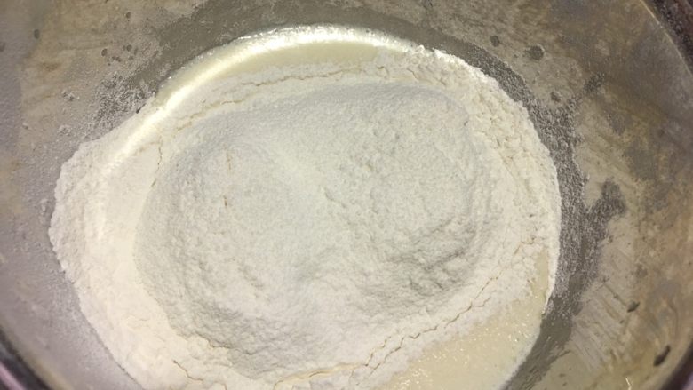2. 油盐牛奶放入碗里,用蛋抽搅拌至乳化状态