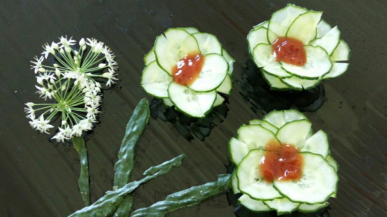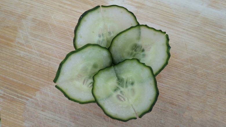 5. 切一些这种两片为一组,中间不要切断的黄瓜片