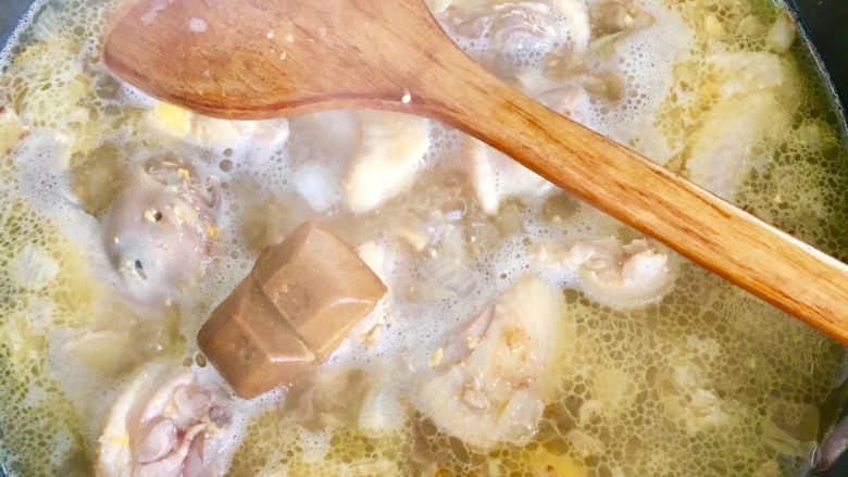 13. 汤汁倒入其中,放上鸡肉美美哒吃上。