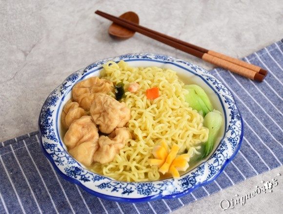 方便面在日常生活中不免都会接触到,快捷省事儿偷懒。我今天做的时候加入了面筋球,这样吃起来更有嚼劲,再搭上一颗油菜更是营养均衡且清爽。