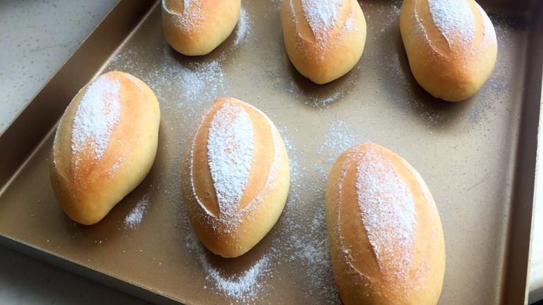 13. 烤箱预热上下火180度,放入中层烤18-20分钟。入烤箱前往面团喷点水。