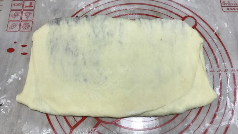 15. 90度旋转,松弛10分钟后,再上下擀平。