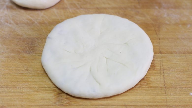 8. 饧好的面团再次揉匀,分成剂子,擀开,这里一定要把它擀的尽量薄,如饺子皮一样。