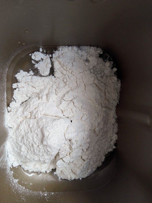 1. 将油皮材料即主料的前四项放到面包机里,和面30分钟,能拉出有韧劲的膜,这样在后续的制作中才不容易破酥