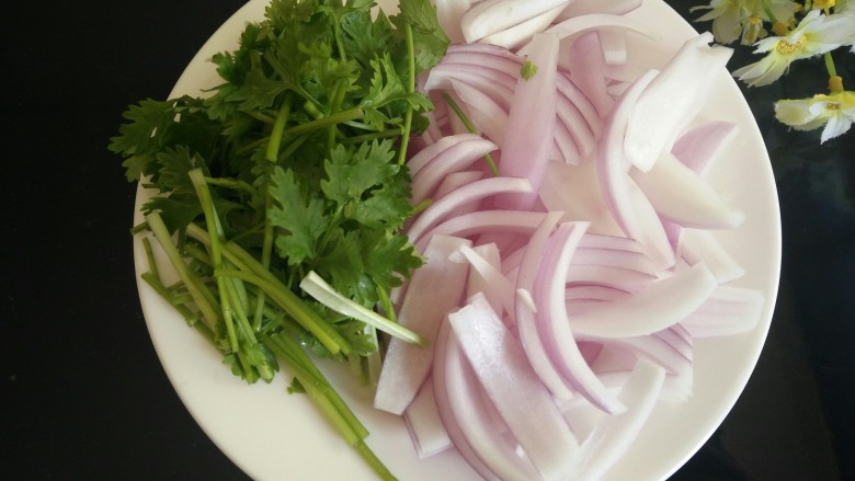 14. 放孜然粉,白芝麻一起翻炒一下(喜欢香菜的放香菜一起翻炒出锅,我儿子不喜欢就摆盘放一点)