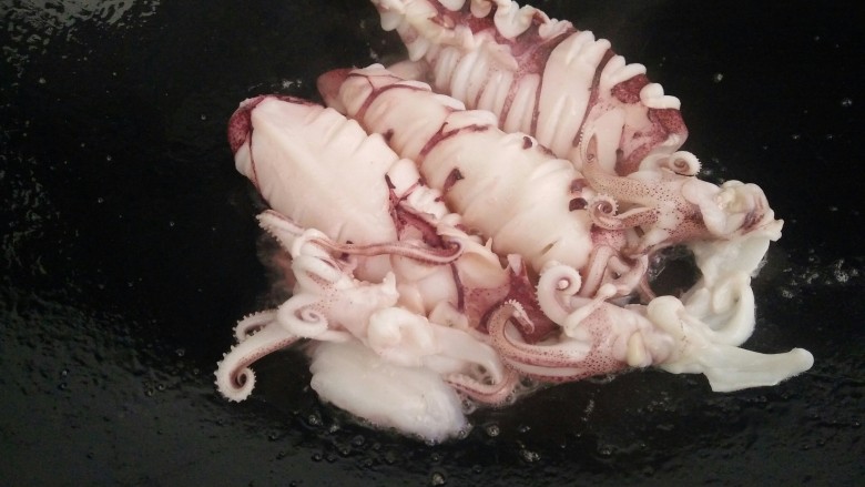 9. 煮开水放鱿鱼烫一分钟捞起来