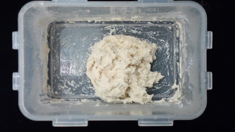 2. 面团材料中所有食材混合,揉成湿一点面团。