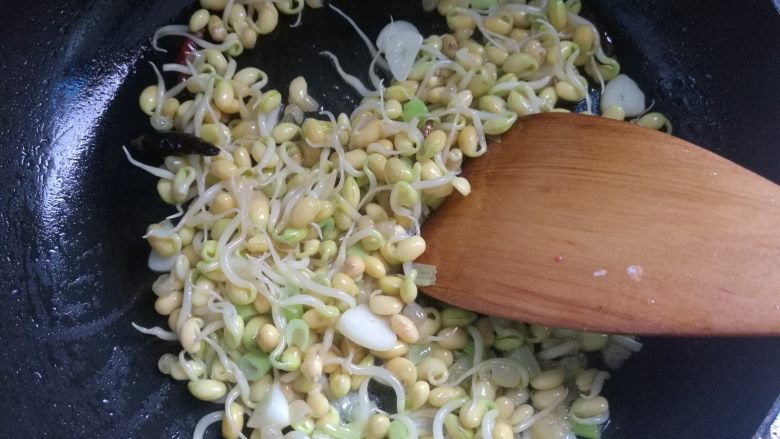 2. 黄豆芽用清水漂洗几遍,捡去豆皮。